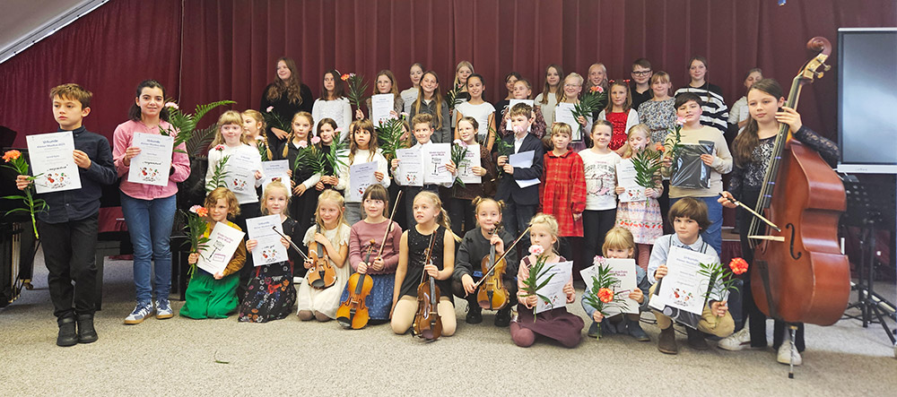 Mit großer Spielfreude und beeindruckendem Können präsentierten sich alle Teilnehmenden als wahre kleine Meister. Trotz mancher Aufregung war es ein Genuss, den Lütten zuzuhören und auch zuzusehen. Sie begeisterten das Publikum mit abwechslungsreichen Beiträgen und erreichten hervorragende Prädikate. Ob Flöte, Klavier, Geige, Cello oder Akkordeon, ob allein oder im Ensemble – es war einfach beeindruckend, was Schüler und Lehrer vorbereitet hatten.