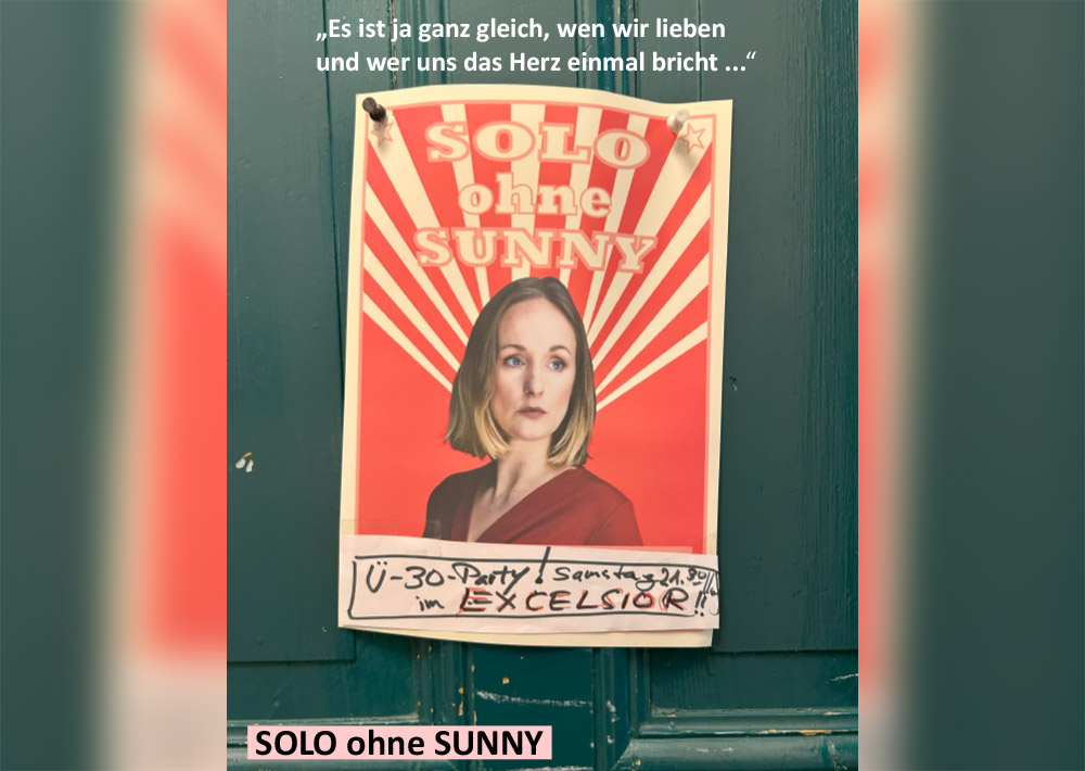 1980 kommt der Film „Solo Sunny“ in die Kinos der DDR. Die Hauptfigur des Films ist die Schlagersängerin Ingrid Sommer, die einen unabhängigen künstlerischen Weg gehen will. Ihr berufliches Streben scheitert an den Strukturen ihrer Zeit. Doch obwohl ihre Sehnsucht nach Liebe keine Erfüllung findet, gibt sie nicht auf. Elke Mark ist von der Hauptdarstellerin des Films so beeindruckt, dass sie ihre 1980 geborene Tochter Sunny nennt – Sunny Mark. Sie will der Tochter alle Möglichkeiten geben, die ihr selbst verwehrt blieben. Sie lässt sie Tanz- und Gesangsunterricht nehmen und ermöglicht ihr den Weg in die Unterhaltungskunst. Jahre später trifft die erwachsene Sunny auf die gleichen Hierarchien und Strukturen, die sie in Abhängigkeit und Bevormundung bringen. Und wie einst ihr Idol versucht sie auszubrechen, immer auf der Suche nach dem Eigenem, dem Ursprünglichem. In 45 Jahren seit Erscheinen des Films hat sich einiges geändert, aber die Fragen an das eigene Leben bleiben – wie will – wie kann ich leben ? Ein Stück über die Lebensentwürfe von Frauen in Liebe, Beruf und Gesellschaft, über die Suche nach der eigenen Identität.