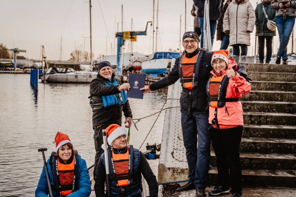 Am Sonntagnachmittag wurde aus dieser Idee die Umsetzung. Patrick Dahlemann, Chef der Staatskanzlei, übergab einen Zuwendungsbescheid über 7.000 Euro aus dem Fonds für Vorpommern und das östliche Mecklenburg an die Vereinsvorsitzende Petra Müller sowie an Volker Küchler, Sektionsleiter Drachenboot. Die Förderung unterstützt die Anschaffung des neuen Drachenboots, mit dem der Verein sein sportliches Angebot weiter stärken kann.